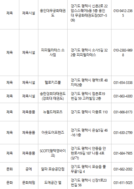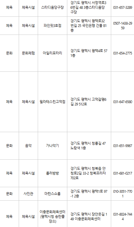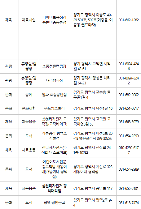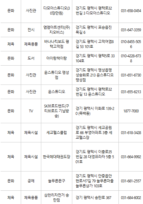 평택 문화누리카드 사용처