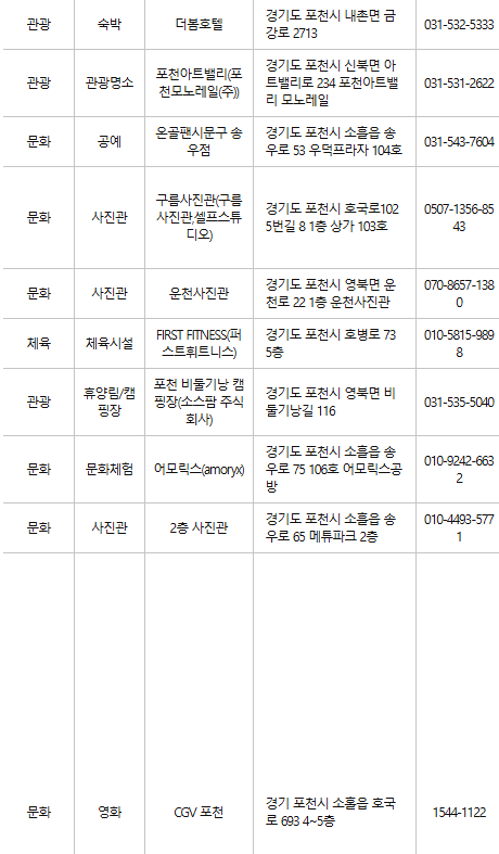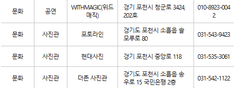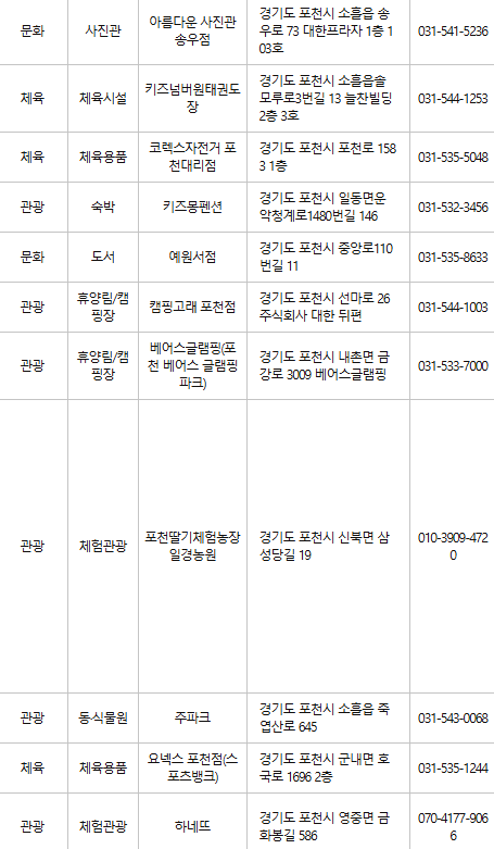 포천 문화누리카드 사용처