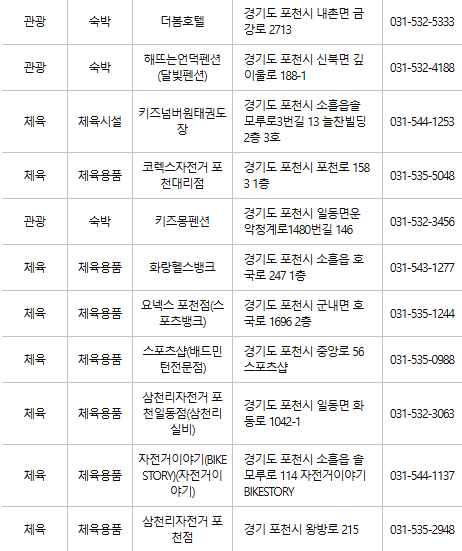 포천 인근의 숙박업소 및 관광지에서도 카드를 사용할 수 있어 여행을 즐기기에도 유용합니다.