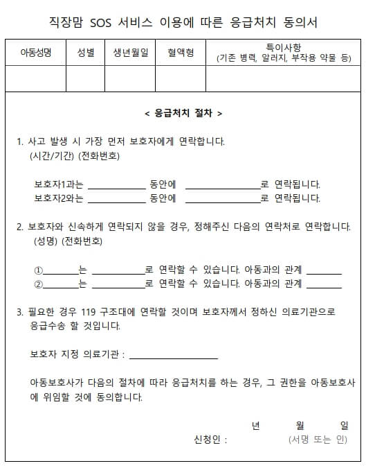 - 아이돌봄 신청서 작성 (홈페이지 다운로드 가능)