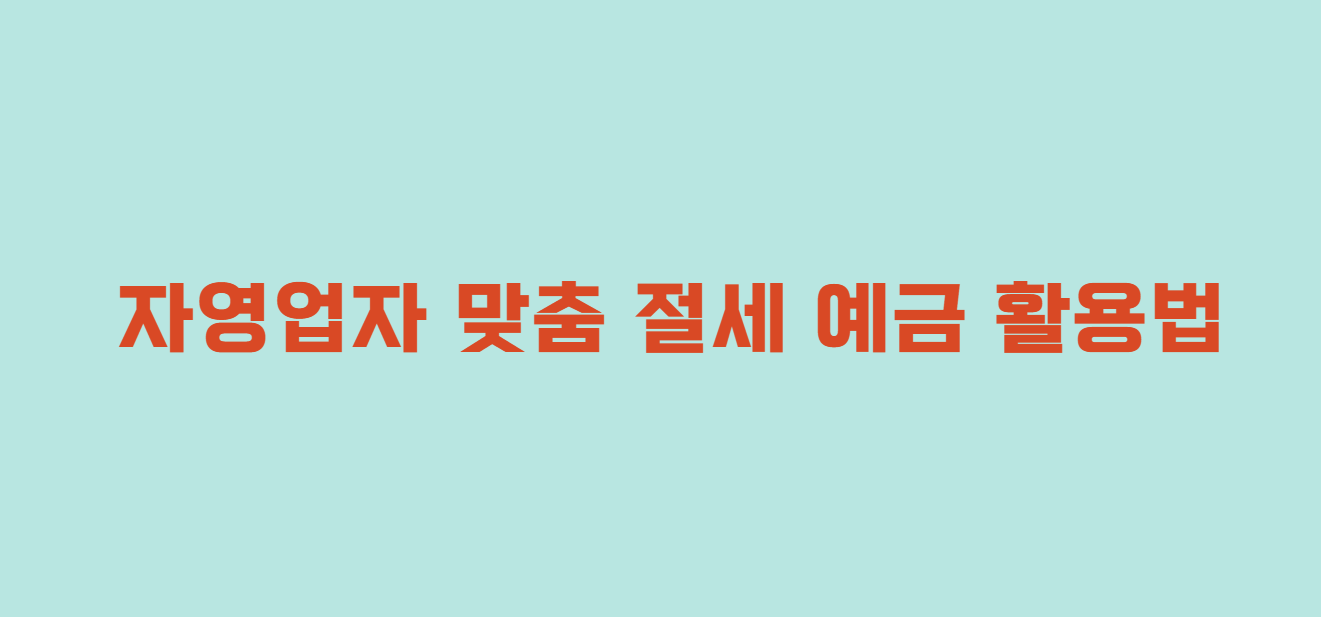 자영업자 맞춤 절세 예금 활용법