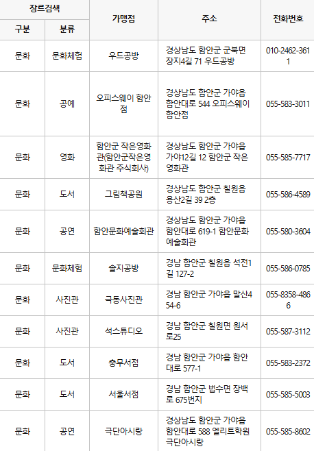 #함안문화누리카드사용처 #함안문화누리카드가맹점 #함안문화누리가맹점연락처 #문화누리카드사용처 #문화누리카드온라인사용처 #문화누리카드잔액조회 #문화누리카드사용처확인 #문화누리카드함안사용방법 #함안문화누리카드사용할수있는곳